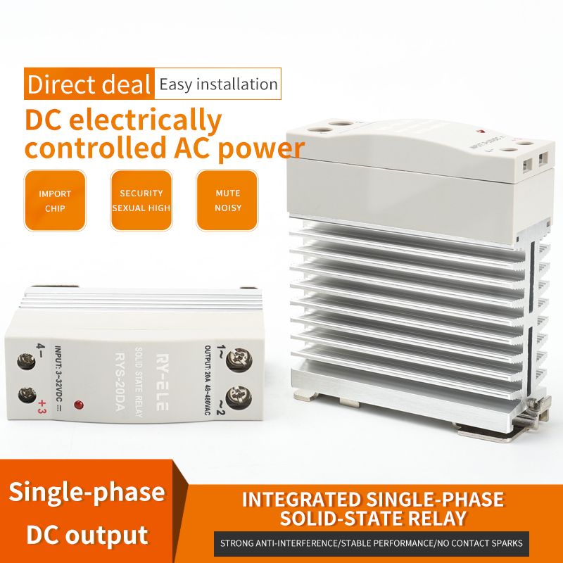 The RYSSR-DA1H, AA1H, and DD1H series solid-state relays use semiconductor switching elements to replace the contactless on/off electronic switches of the original mechanical switch. Two small terminals are the input control terminals, and the other two large terminals are the output controlled terminals. The input and output are separated by photoelectric or magnetic isolation.