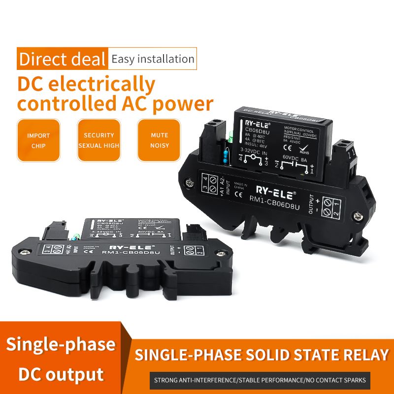The RM1 series combines AC or DC output PCB soldered direct insertion SIP solid-state relays with a 10.5mm wide rail mounting base to produce a ready to use SSR component. The 10.5mm volume can greatly reduce cabinet installation space, making it an ideal control device for low power in PLC power amplification, electromagnetic control, heating, lighting, or electromechanical motion.